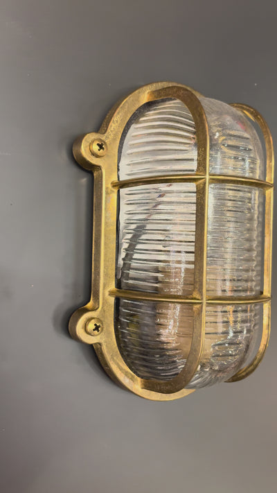 Die SLATINA Wandleuchte ist ein wunderschön handgefertigtes, IP64-zertifiziertes Messinglicht, das sowohl für den Innen- als auch für den Außenbereich konzipiert ist. Ihr maritim inspiriertes Design verleiht jedem Raum, sei es in einem feuchten Bereich oder als Akzent in geschützteren Bereichen, einen besonderen, nautischen Touch. Diese Leuchte besteht aus hochwertigem Messingguss und gegossenem Glas und ist ebenso langlebig wie visuell beeindruckend.