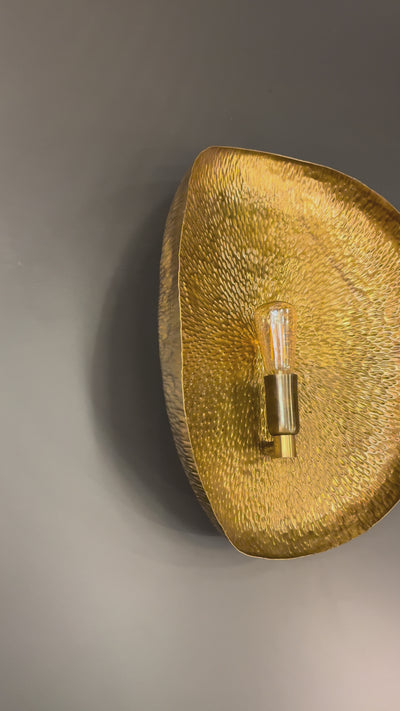 Die PALMA Wandleuchte ist ein atemberaubendes und elegantes Beleuchtungselement, das jeden Raum mit seinem handwerklichen Charme aufwertet. Handgefertigt aus gehämmertem Messing, wurde diese Wandleuchte entworfen, um einen unvergesslichen Lichteffekt zu erzeugen und Ihren Raum in ein Heiligtum von Wärme und Eleganz zu verwandeln.
