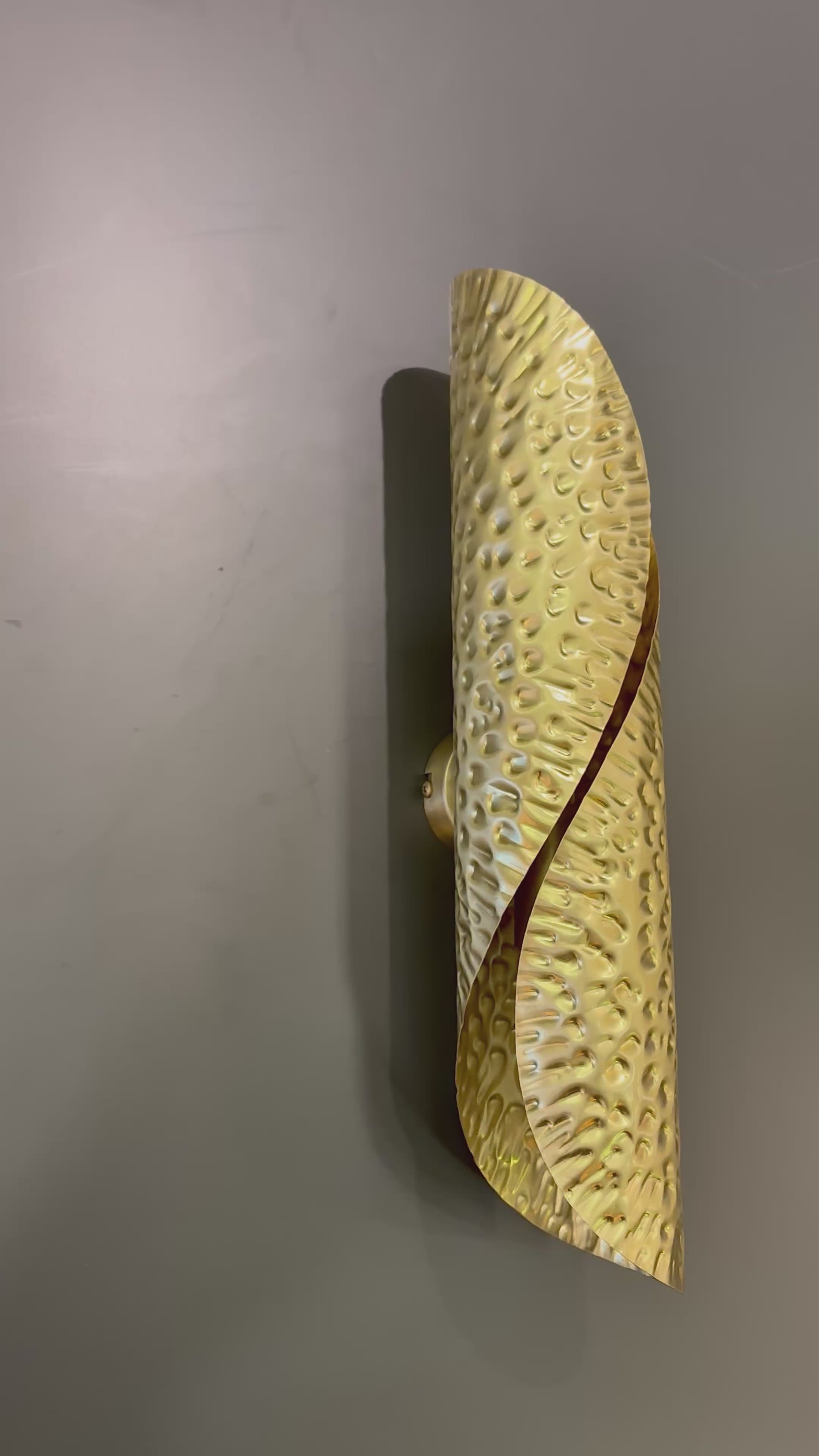 Introductie van de RIVES Messing Gehamerde Wandlamp – een verlichtingsarmatuur dat stijl, verfijning en functionaliteit prachtig in balans brengt. Gemaakt van een gedeeltelijk gehamerd messing plaat, is deze wandlamp vakkundig gerold in een slanke, cilindrische vorm, die een unieke textuur toont die het ontwerp versterkt. De combinatie van licht en textuur maakt het een opvallend stuk dat moeiteloos elke ruimte verheft.